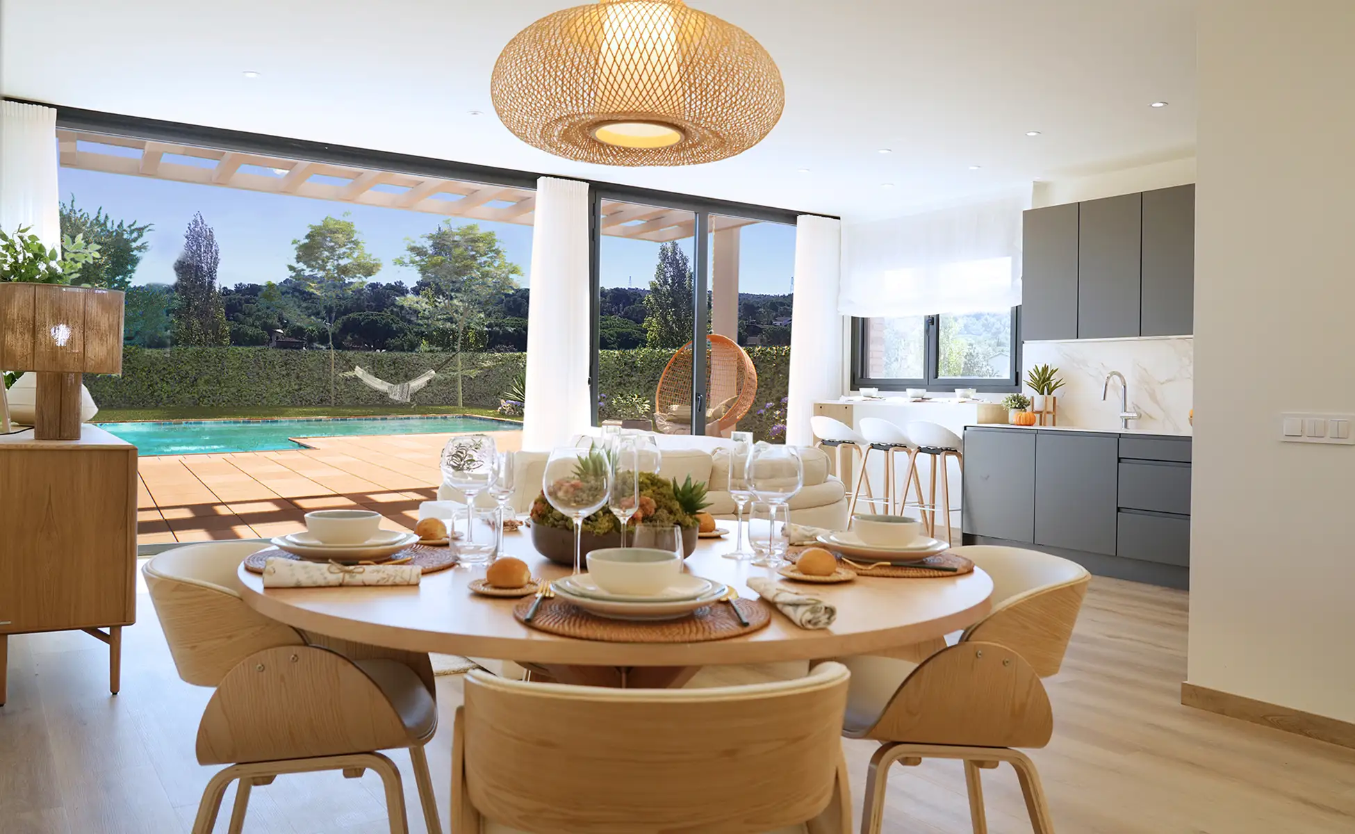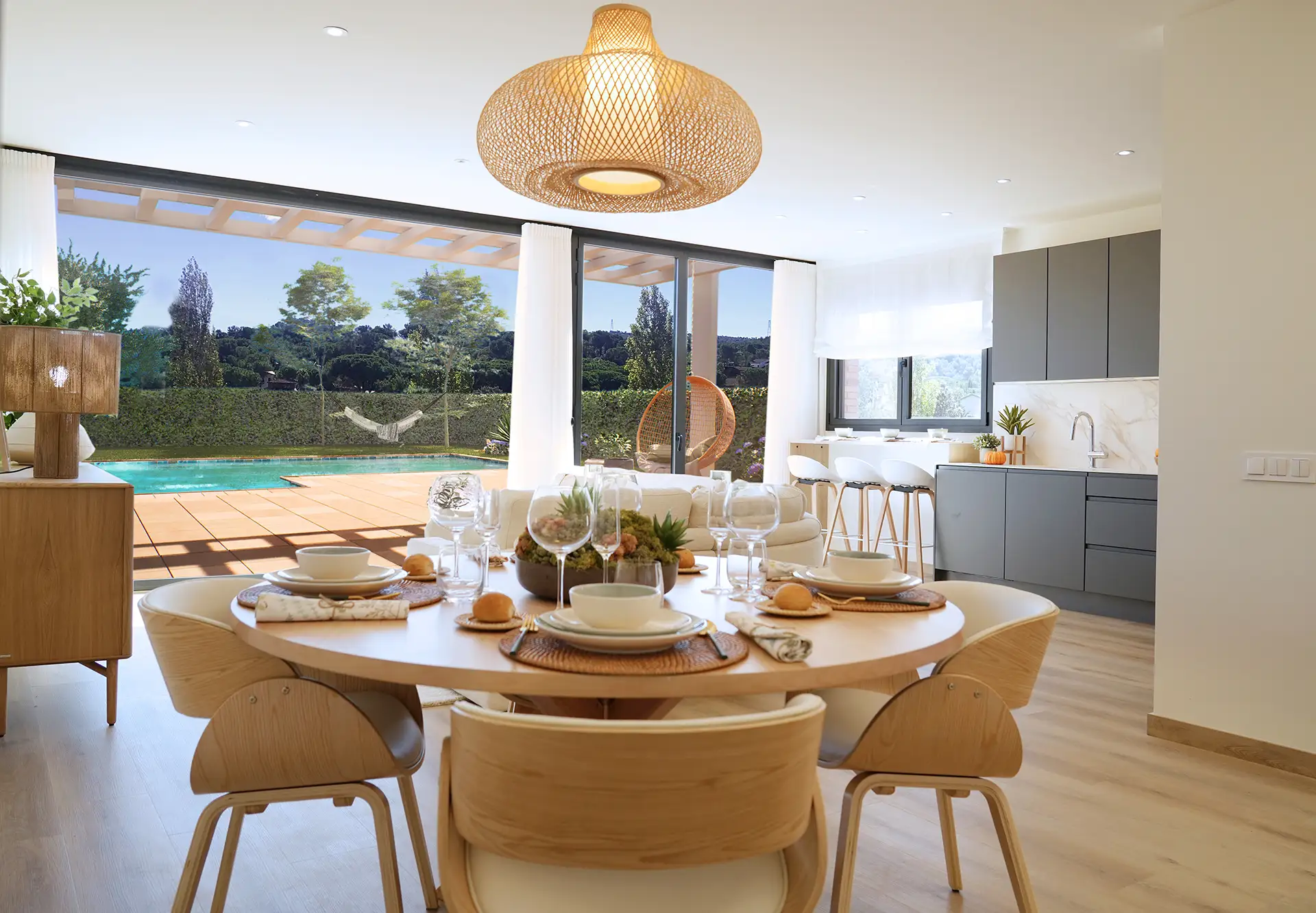 Casas donde el sol, la luz, las vistas y los acabados se abrazan creando ambientes muy cálidos, familiares y confortables.