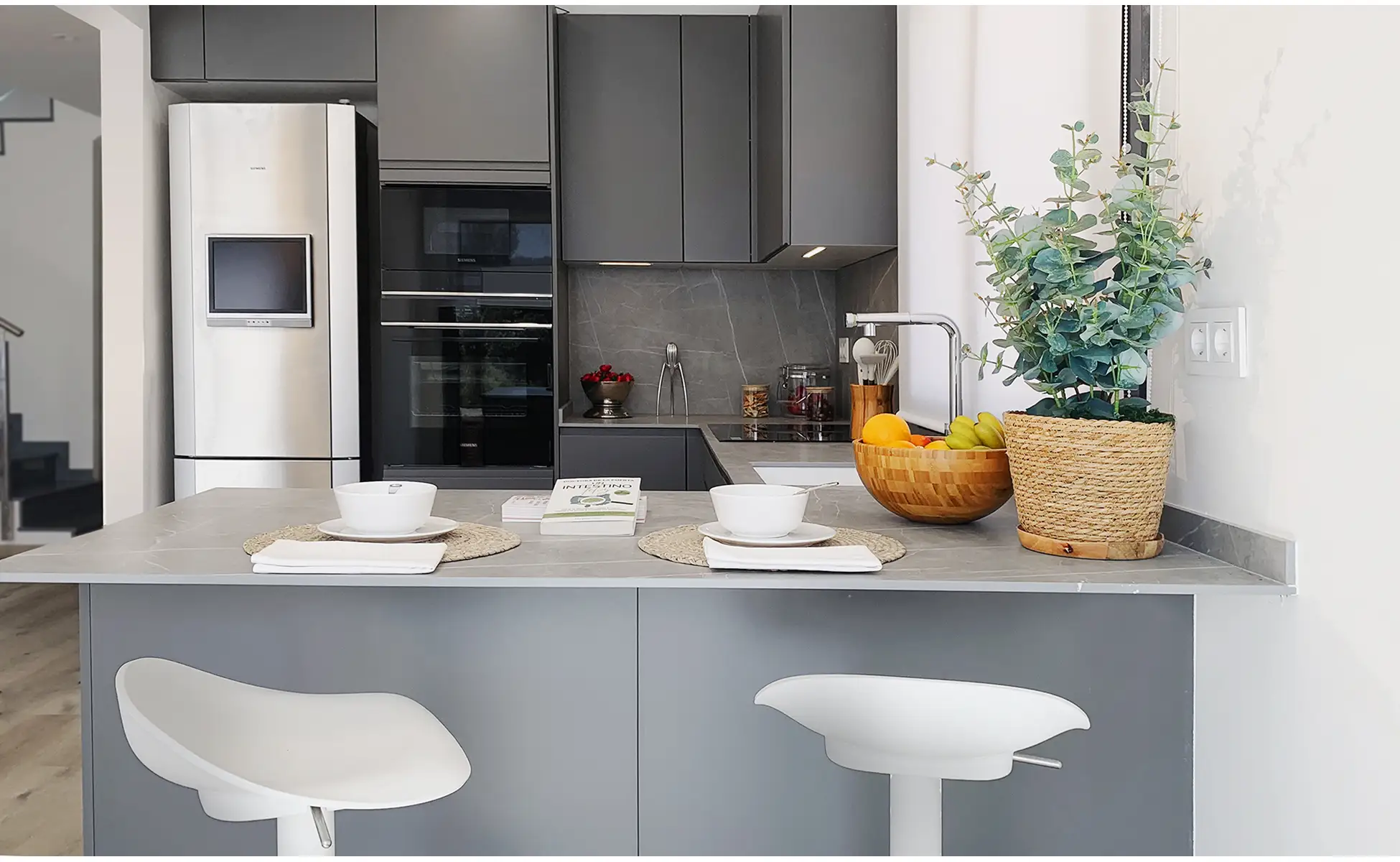 Trabajamos con marcas de referencia y de reconocido prestigio del mercado, como Grohe para la grifería y los sanitarios, Eco Nolte Küchen y Siemens para las cocinas, Bdecora para el parquet -entre otras- y acabados naturales como el acero corten, la madera, el cristal y la piedra para ofrecer la máxima calidez, comodidad y calidad.